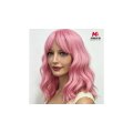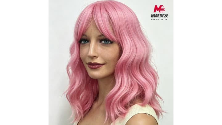 ピンクの巻き毛のリアルなファッションウィッグ